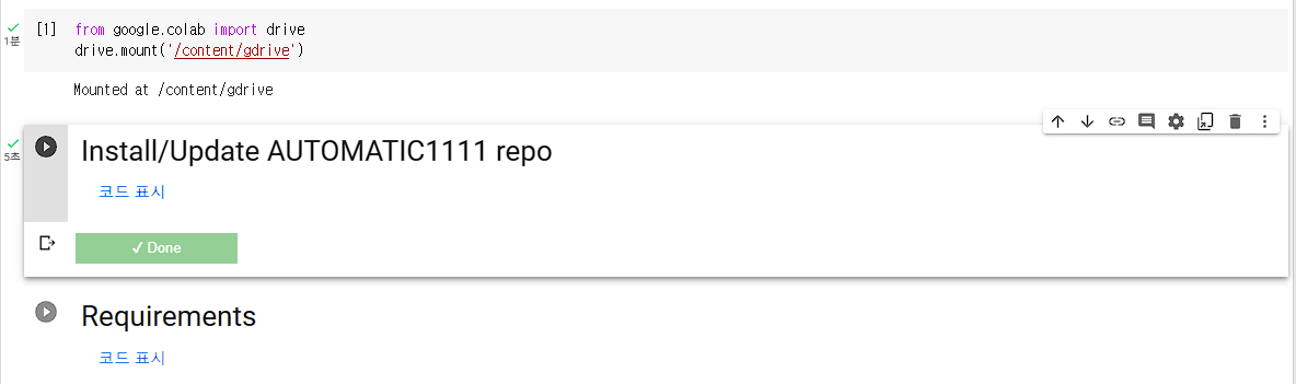 Install/Update AUTOMATIC1111 repo 옆에 있는 ▶를 클릭해 주세요.