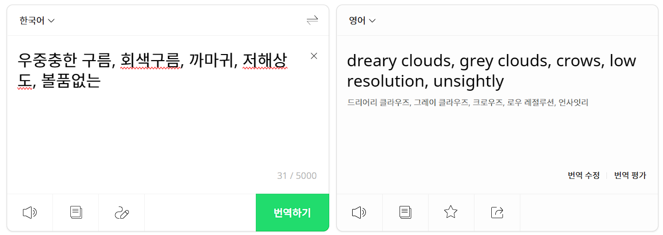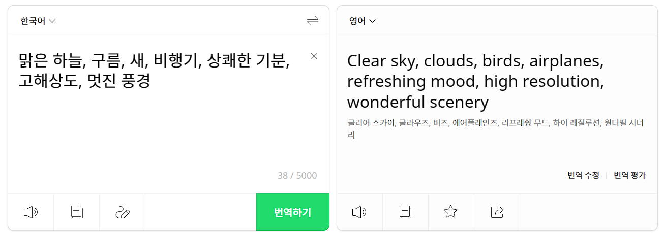 파파고를 통해 원하는 그림의 텍스트를 만들었습니다. 그것을 상단에 입력해보겠습니다. 상쾌한 기분의 하늘을 그려보려 합니다.