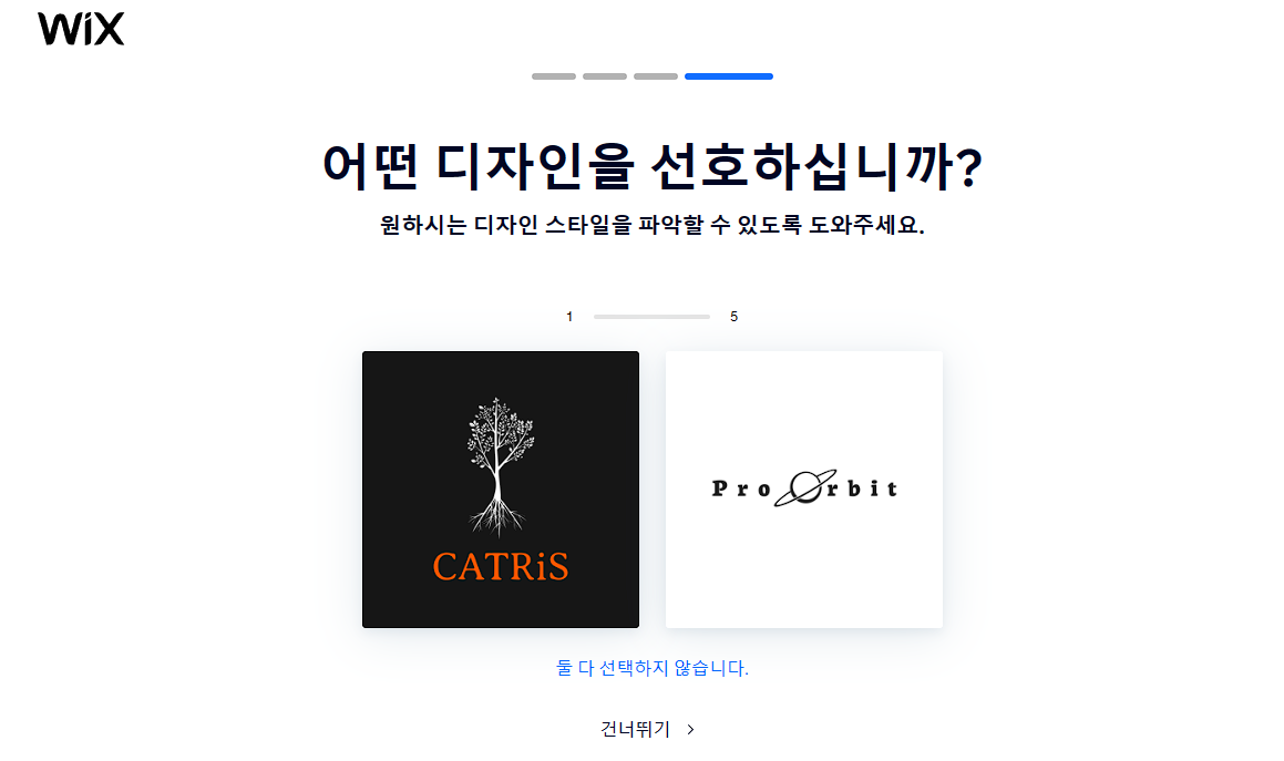 총 5번의 예시 디자인을 선택합니다. 원하는 디자인 성향을 파악하기 위한 질문입니다.