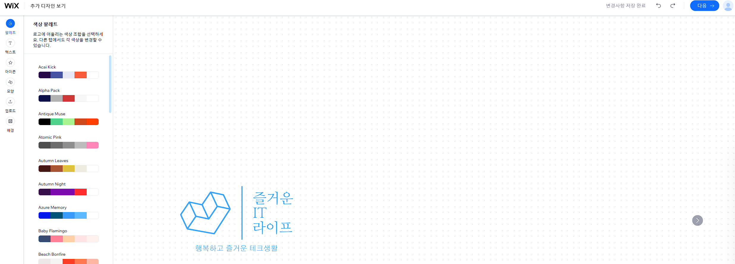 각 항목을 통해 에디트를 완료하셨다면 오른쪽 상단의 '다음'을 클릭해 주세요.