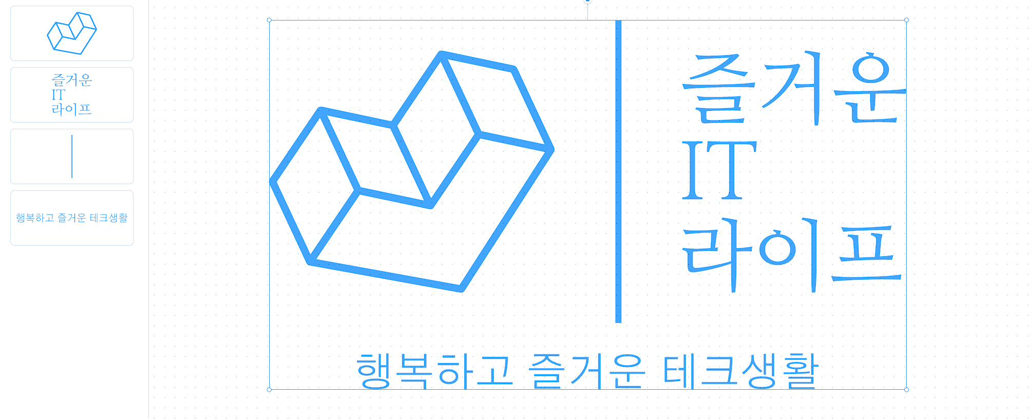 그러면 방금 전 만들었던 로고디자인이 보이실 텐데요. 여기에서 로고 디자인을 크게 키워보겠습니다. 마우스로 로그를 드래그하셔서 모든 요소들을 선택해 주세요.